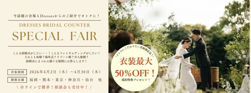 結婚式場選びでお困りの方は、Dressesブライダルカウンターにご相談してみてはいかがですか。